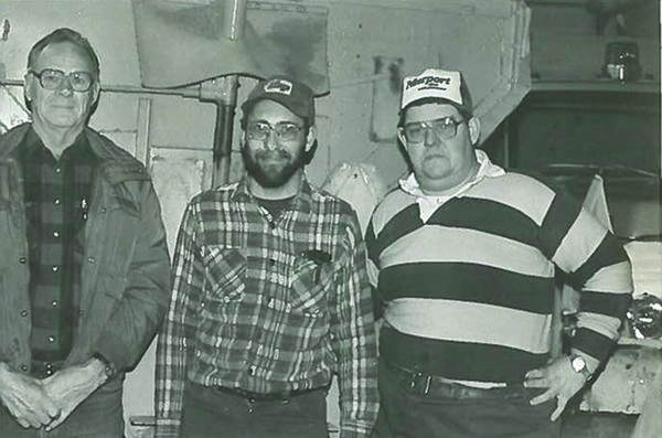 John Novak (middle) with Ralph Shinn (left) and Roger Janssen (right) during Novak’s first month of work. Photo submitted.