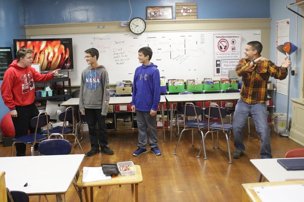 The Improv group consists of Stan Miller, Jesse Ford, Logan Finzen and Xander Finzen, who practice with LaRue mainly on Thursdays before school. During a recent rehearsal, the group acted several fun scenarios on the spot to sharpen their skills, including a skit with ketchup-flavored popsicles and another hiking in the dark. Subjects are drawn at random, so one day the group could be acting out a burglary or a musical night at a nursing home another day. The actors get two minutes to talk through a scene before setting up with chairs and delivering a performance in front of a judge.