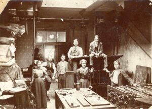 In 1898, the space at the top of Traer’s winding staircase (aka the Winding Stairs) was a newspaper office. This photo shows the printing press and some of the Traer Star-Clipper newspaper staff at the time. The skylight in the ceiling provided (enough light) for typesetting and running the ...