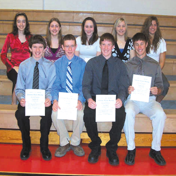 She then handed the program over to the juniors, which included Amanda Arp, Dylan Youel, Carston Calderwood, Emily Ewoldt, Jeremy Wrage, Morgan Halupnick, Kelsey Upah, Amanda Hoeg, Nora Seda, and Lucille Howard, many of whom took turns reading the accomplishments of and honoring the eight seniors: Wyatt Hanus, Catie Thompson, Alex Herink, Sara Stoakes, Marah Jacobs, Sarah Schrier, Alex Kubik, and Brooke Johnson.