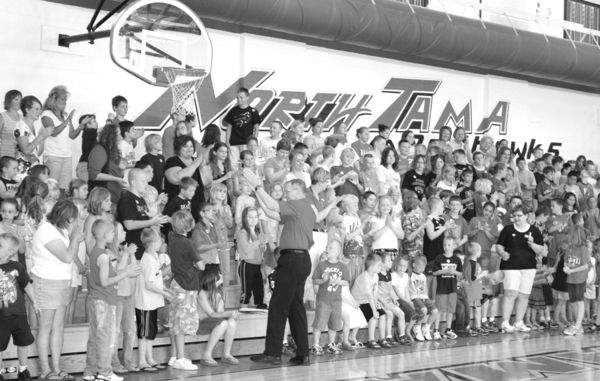 The Elementary students gave Mr. Foster a standing ovation during the awards assembly at the school. Foster has retired after 30 years as North Tama principal and shared his last day with the students.