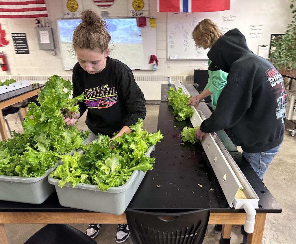 - Bailey B., Nathan M., and Mason H. help pick the lettuce in the Agricultural Education classroom before it is sent to the school kitchen to be washed and served to students! CONTRIBUTED PHOTO