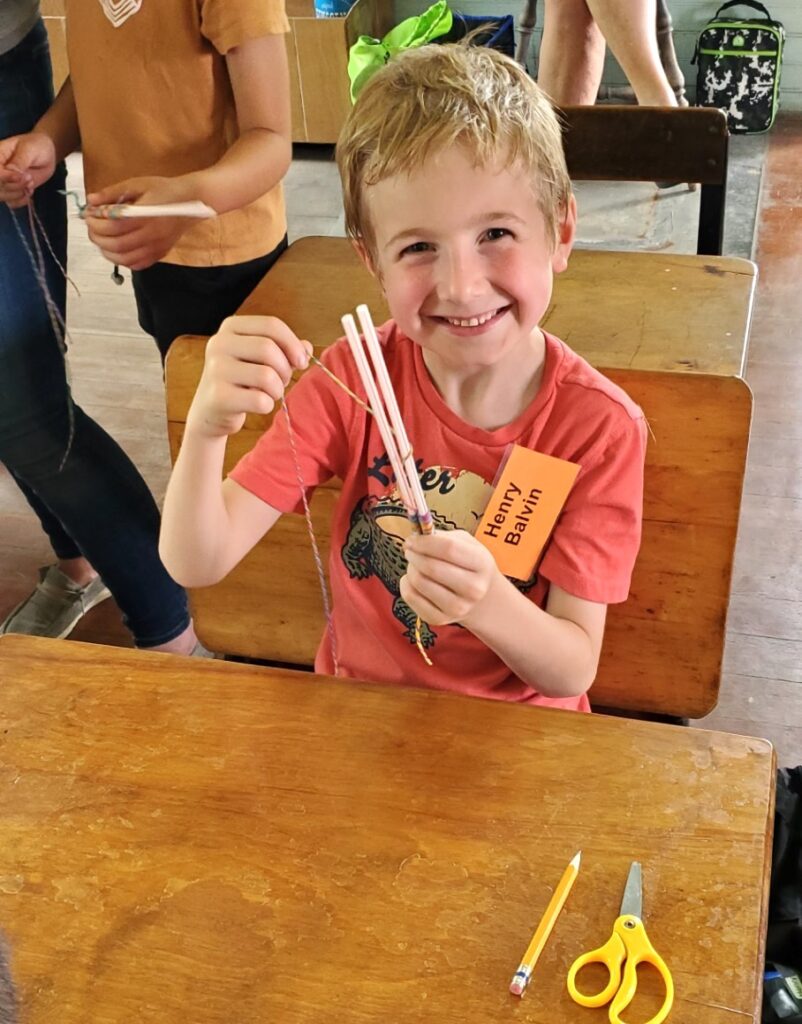 - Henry Balvin showcases his weaving project during Haven Day Camp held south of Chelsea this past June. PHOTO COURTESY OF JENNY HULME
