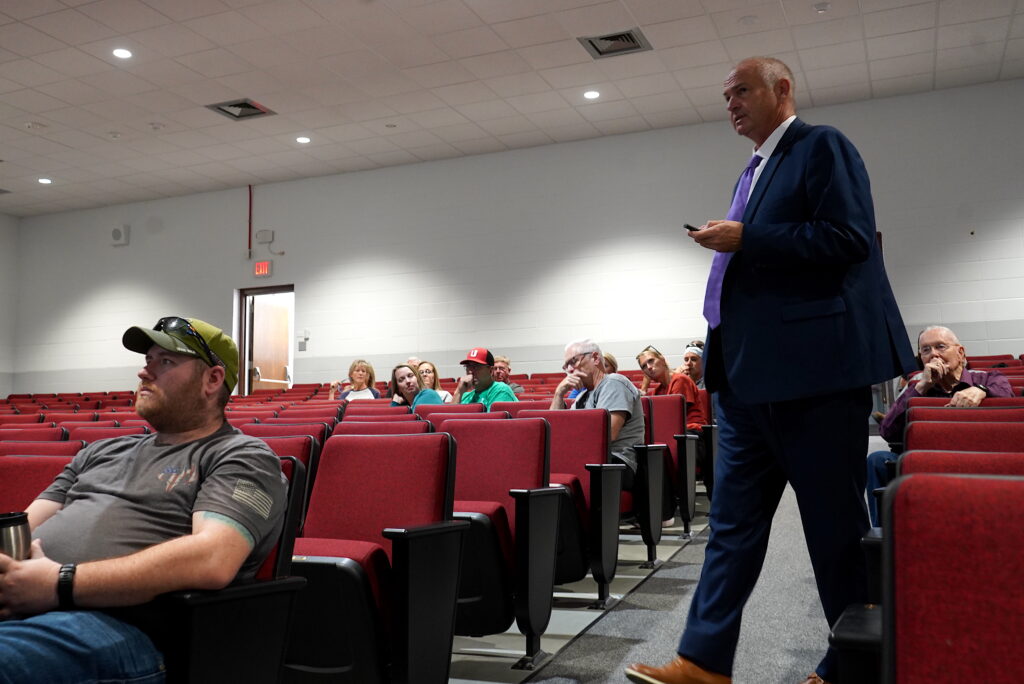 Garrett Pochop with the investment bank Piper Sandler also briefly addressed the audience during the town hall, explaining the bond referendum’s tax impact. For context, he said in 2024 around 34-35 school districts in Iowa had a bond referendum on the ballot; this year the number of districts is closer to 44.