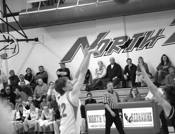 The second quarter began just as well with a great, nearly three point shot from Jeremy Wrage. Hefty followed this by hitting a free throw. An exciting play came next when Boerm blocked a pass from the Regents and Wrage was fouled as he got the ball. Wrage hit the following two free throws. The guys kept up the excitement as Sean Dengler sped the ball down the court and passed to Hefty, who put it up for two points. After Isenhower sunk a three point shot, the quarter ended 29 to 18 with the Redhawks ahead.