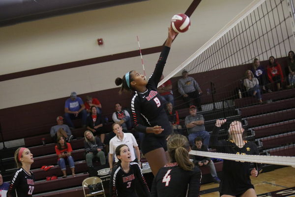 - Jasmyn Bush goes up for one of her 34 kills on the day against #3 Janesville on Saturday, Aug. 31.