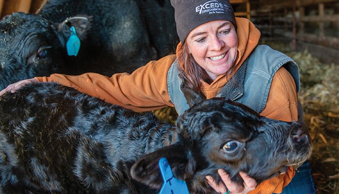 - Calving season means spending a lot of time in the barn caring for newborn animals, said Tama County farmer Rebecca Dostal. –Photo by Conrad Schmidt