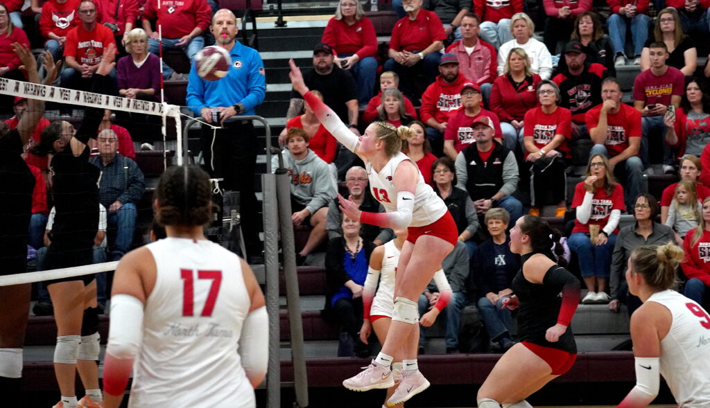 TRAER – For the sixth time in program history, North Tama volleyball is state-bound and in search of its first state title after thrashing Cedar Ridge Christian 3-0 (25-12, 25-17, 25-20) last Wednesday, Oct. 29, in the Class 1A Region 3 championship match played at Waterloo West High School.