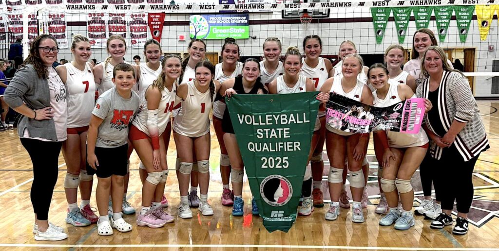 - The North Tama volleyball team pictured following their sweep of Cedar Ridge Christian at Waterloo West High School on Wednesday, Oct. 29, which secured not only the Class 1A Region 3 championship but also a trip to the 2025 State Volleyball Tournament. Also pictured, head coach Channing Halstead, front right, assistant coach Breanna Sebetka, back right, and assistant coach Karisa Kladivo, front left. PHOTO BY RUBY F. MCALLISTER