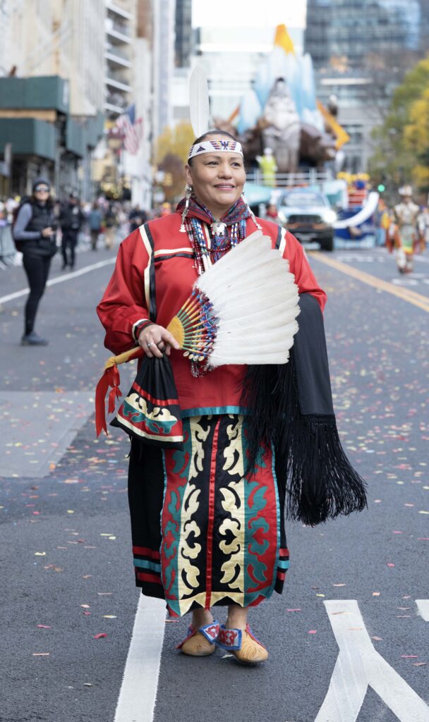 He started Native Pride Productions about 20 years ago, and Yazzie said that for this year’s parade, the Macy’s producers hoped to highlight the multigenerational aspect of Native dancing. Both Corbin and Kathy have been dancing for almost all of their lives — Corbin did the men’s traditional last Thursday, and Kathy the women’s appliqué — so they were a natural fit when Yazzie was seeking performers.
