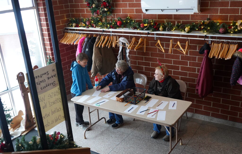 Last Saturday, Dec. 13, as snow piled up on the sidewalk outside Peace Church’s south entrance, children were lined up down the street well ahead of Kids Shopping Day’s 9 a.m. start which kicked off with Paustian unlocking the church’s double doors. Once inside, attendees were greeted at the check-in table by volunteers Sherri Denbow and Becky Fevold who handed out gift lists and pencils.