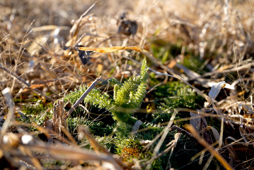 Only a few species of birds were spotted during the hike, including an impressive number of pheasants and a single “little brown job” no one was able to positively identify before it flitted into the grass. In terms of mammals, plenty of coyote scat was observed along the trails as well as several badger holes (yes, Irvine Prairie has a badger population). But there was still plenty to see as the sleeping prairie’s dormant plants boast an abundance of different textures this time of year in their dried seed heads and stalks. Of particular note, the delicate ‘stars’ of what remained of the Queen Anne’s lace, yarrow, and golden Alexander blooms; the prickly yet squooshy centers of the many expired coneflowers; and the remains of Canada wild rye which looked like scarecrow fingers.