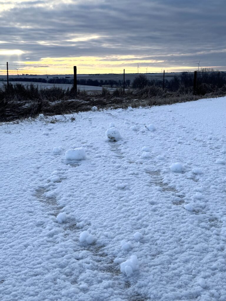 The rare weather phenomenon known as “snow rollers” pictured in rural Tama County at the property of Mindy Finzen west of Traer on Friday, Jan. 16, 2026. Snow rollers were also observed in and around Gladbrook. PHOTOS BY MINDY FINZEN