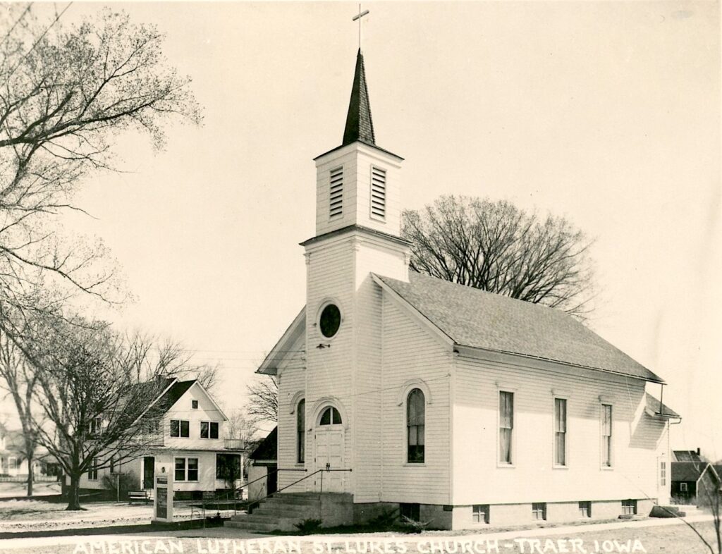 Traer’s St. Luke Evangelical Lutheran Church building was moved from Blairstown to Traer in September 1950. The moving job was handled by the Kreger house moving company of Waterloo. After the spire was removed, the church stood 36 feet high. About 1,000 electric, telephone and telegraph lines had to be lifted to allow the church to pass. Total distance traveled was 46 or 47 miles, most of it in a zig-zag route to avoid towns. Twelve bridges were crossed. Top road speed was 10 miles per hour, but the average speed was much less. The church was purchased for $1,345. The cost of moving was around $2,500. It was erected in Blairstown in 1879 and is remarkably well preserved. The church building, located at 207 Taylor Street, is still in use today and has had additions and renovations through the years.