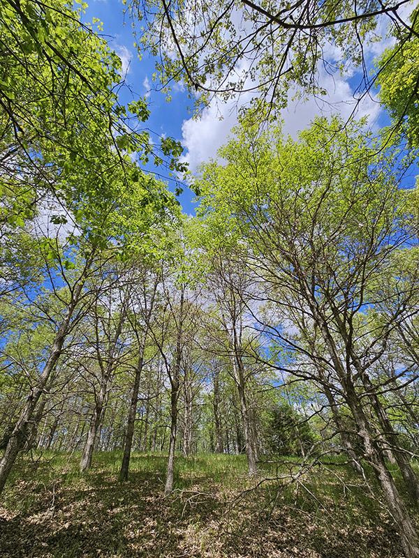 Last May I had the privilege of getting to review a 30-year old tree planting in southern Marshall County. Spanning 80 acres of what was formerly steep, highly erodible cropland, tens of thousands of tree canopies now serve as a permanent cover crop for the soils. The red oaks and black walnuts are 12-14″ diameter at breast height, about halfway to harvestable size. The wind whistled through white pines as I flushed an owl from its perch. Turkeys had been dusting among the fallen pine needles. A stand of white oaks was so solid that my boots walked over a crunchy layer of leaves.