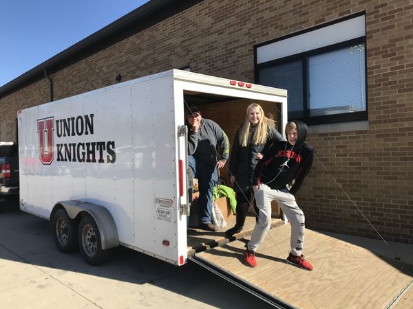 On Friday, February 2, a group of twelve Union High School students had the opportunity to spend the day learning about local non-profits and the work they do in our community. In the morning, we spent time volunteering at the NE Iowa Food Bank, then we dropped off a check for just under $60 to Big Brothers Big Sisters of NE Iowa from a charity penny war that we did before the holidays, and finally, we spent the afternoon serving a meal to people at the Hospitality House, a day time shelter for people who are homeless.