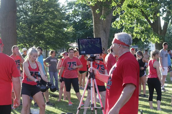 Jace Glenn participates in the 75 minute kettlebell fundraiser with fellow Union graduates. Photos of the event are available on the Dysart Reporter Facebook page to view and download.
