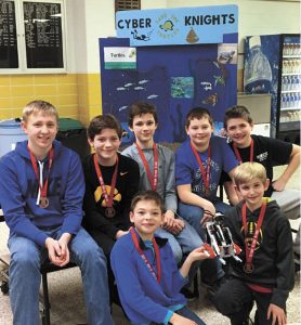 Union Middle School was fortunate to have 4 robotics teams this year; 3 from LaPorte City, and 1 from Dysart. The Dysart team, CyberKnights, had a very successful year! With only one returning member - Marcus Albertsen (8th grade), and 6 rookies: Christian Ryan (7th grade), and the following ...