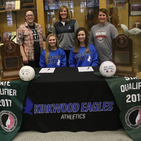 Cousins Katie and Takoa Kopriva have played volleyball together since elementary school on the playground to competing in the State tournament twice in their high school careers. On Tuesday, Jan. 7, the two best friends signed to continue playing the sport they love most together at Kirkwood Community College starting this fall.