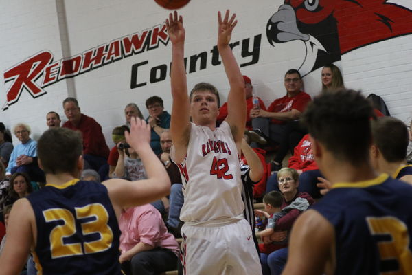 Adam Greiner scored 17 points for the Redhawks in their 77-65 loss to Belle Plaine on Thursday, Jan. 8. Greiner is averagaing 10 ppg this season.