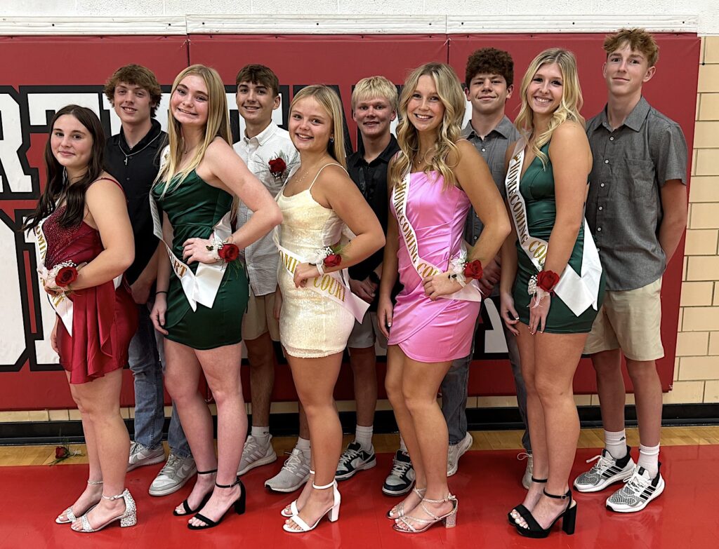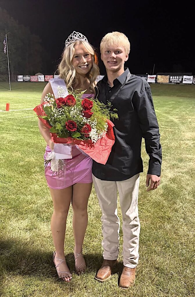 On Friday ahead of the game, Max Monat was crowned Homecoming King during a districtwide pep rally held in the main gymnasium. He is the son of Jana and Scott Monat. Later that evening during halftime, Kruiz Ewoldt was crowned Homecoming Queen. She is the daughter of Tasha and Josh Ewoldt.