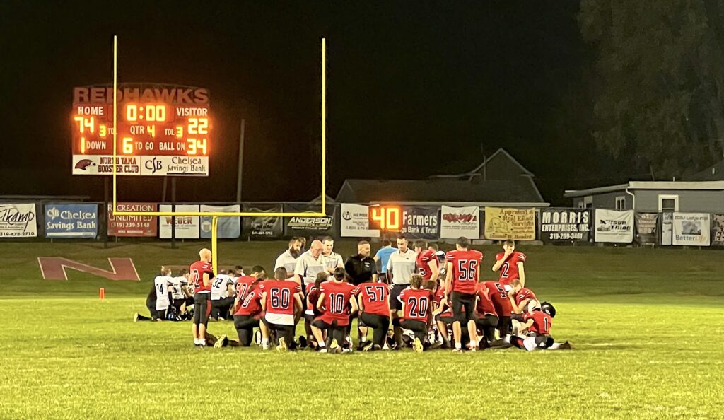 In the 8-player District 6 clash, North Tama (4-2, 3-1) led 46-8 at the half, adding a touchdown in the third quarter and 22 additional points in the fourth to seal the win.