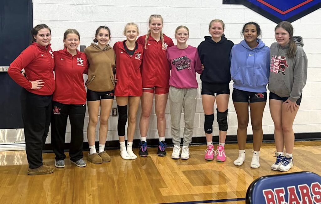 - Members of the 2025-26 Redhawk girls wrestling team pictured on Saturday, Nov. 22, at the BGM Girls Tournament in Brooklyn. The team (which was missing at least four wrestlers due to injury and school trip) placed fifth out of 15 teams. PHOTO COURTESY ANDREW KNAACK