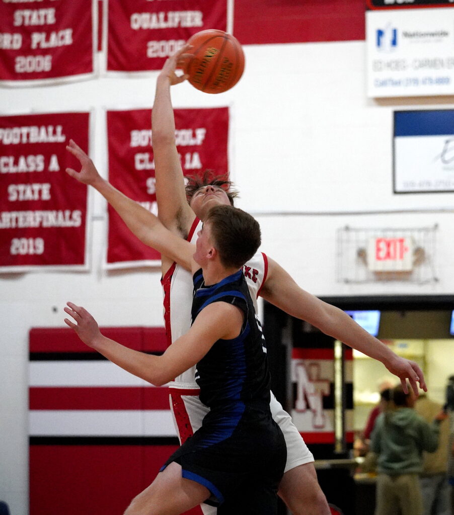 TRAER – Senior Kayler Morris’s two dozen points and junior Brayton Cibula’s nine rebounds helped lead the North Tama Redhawks boys’ basketball team to a 54-36 win over the GMG Wolverines here on Thursday, Jan. 8, in what ended up being a physical, gritty night on the hardwood between the Iowa Star-South rivals.