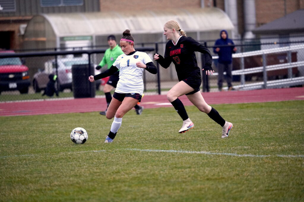 The Knights spent much of the first half on defense working to combat the Rebels’ firepower. Following an initial slow 15 minutes, GCGR freshman sensation Karina Arvizu-Ersland knocked in the first goal before scoring again in the final five minutes ahead of the break. Between goals, Union-North Tama freshman forward Avery Weber exited the game due to injury following an attempt on goal; she later returned to play with written clearance from Union’s head athletic trainer, Taylor Vaske.