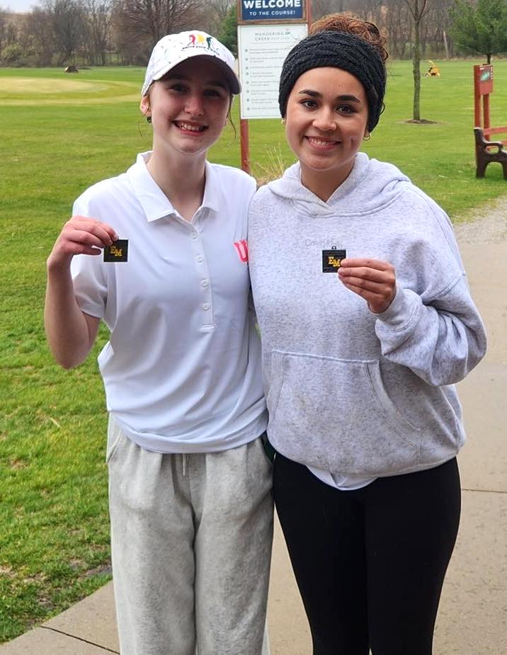 - Knights freshman Mia Michael, left, and senior Melanie Yuska, right, pictured Thursday, April 9, in Marshalltown after earning their first career medals while playing against East Marshall. PHOTO COURTESY RYAN SLATER